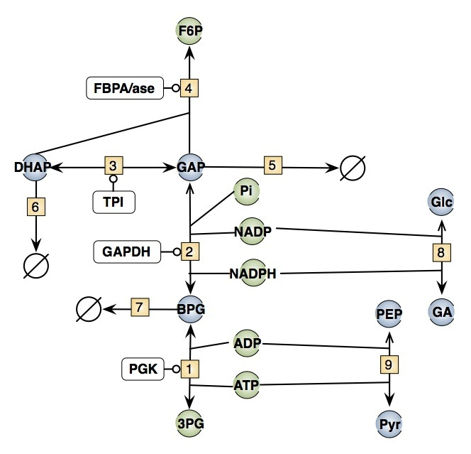 Model of reconstituted gluconeogenesis system in S. solfataricus based on the individual kinetic models for PGK, GAPDH, TPI, FBPAase.