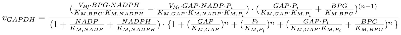 Mathematical model for GAPDH kinetics, BPG, NADPH, NADP, GAP and Pi saturation.