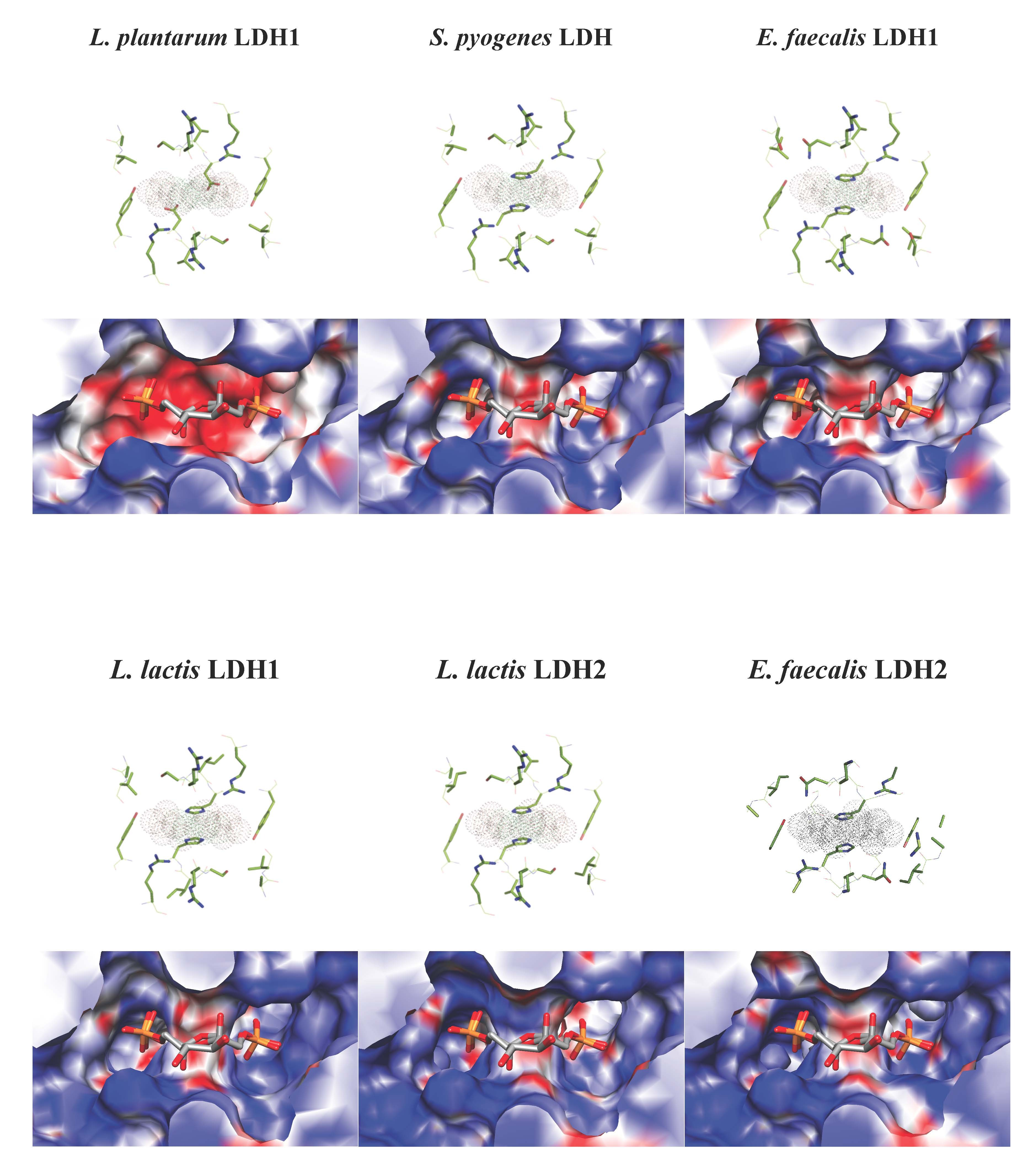 Computation is performed for the modeled 3D structures of LDH enzymes (in PDB format) with the UHBD program, for pH 6 and pH 7.