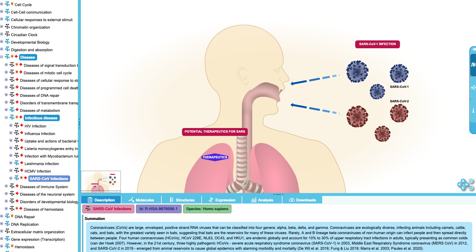 The pathways focused on SARS-CoV infections curated in Reactome. These pathways are work-in-progress.